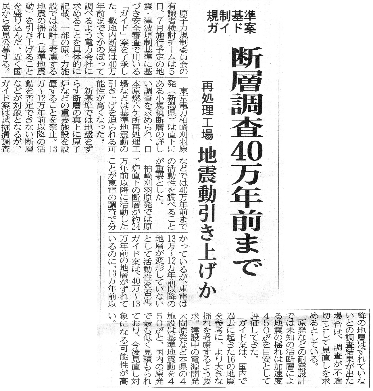[2013_04_06_02]規制基準ガイド案 断層調査40万年前まで 再処理工場(東奥日報2013年4月6日)