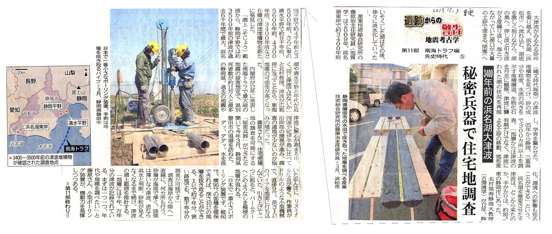| [2013_12_03_03]遺跡からの警告 3000年前の浜名湖大津波 秘密兵器で住宅調査(東奥日報2013年12月3日) |