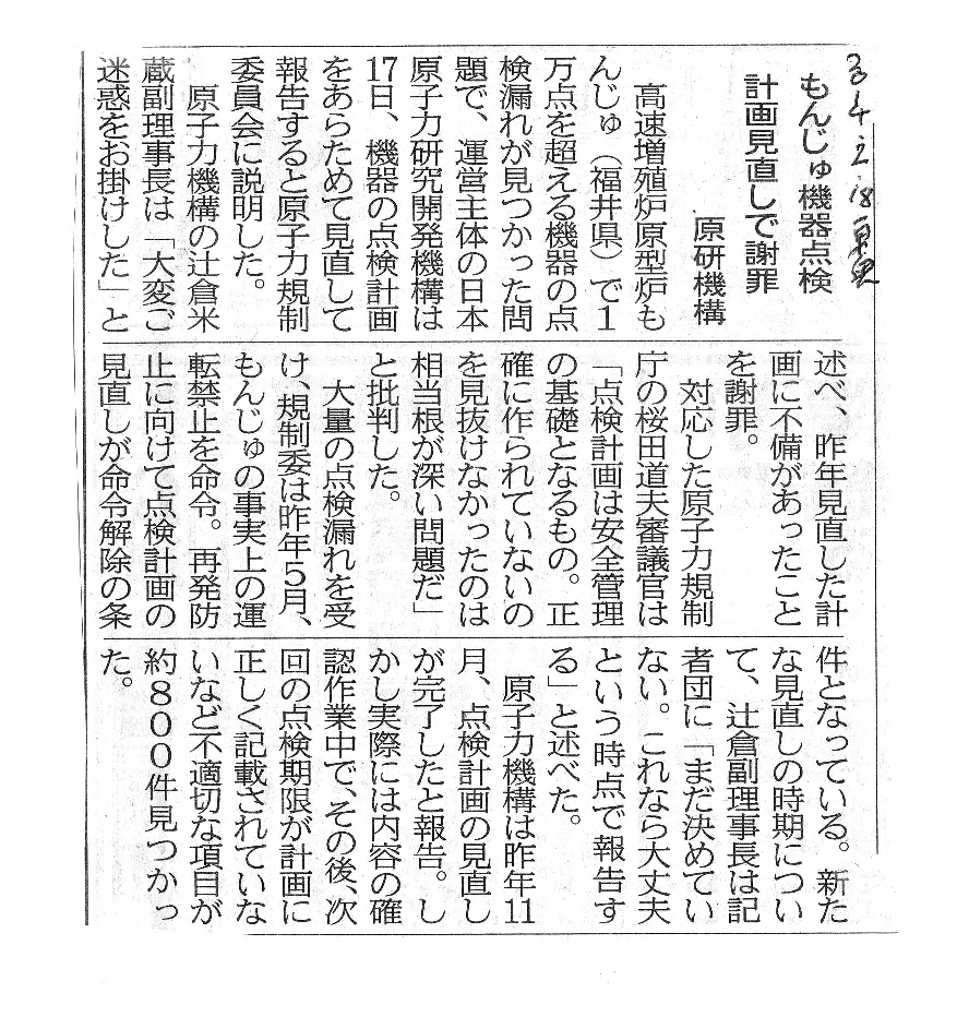 [2014_02_18_02]もんじゅ機器点検 計画見直しで謝罪 原研機構(東奥日報2014年2月18日)