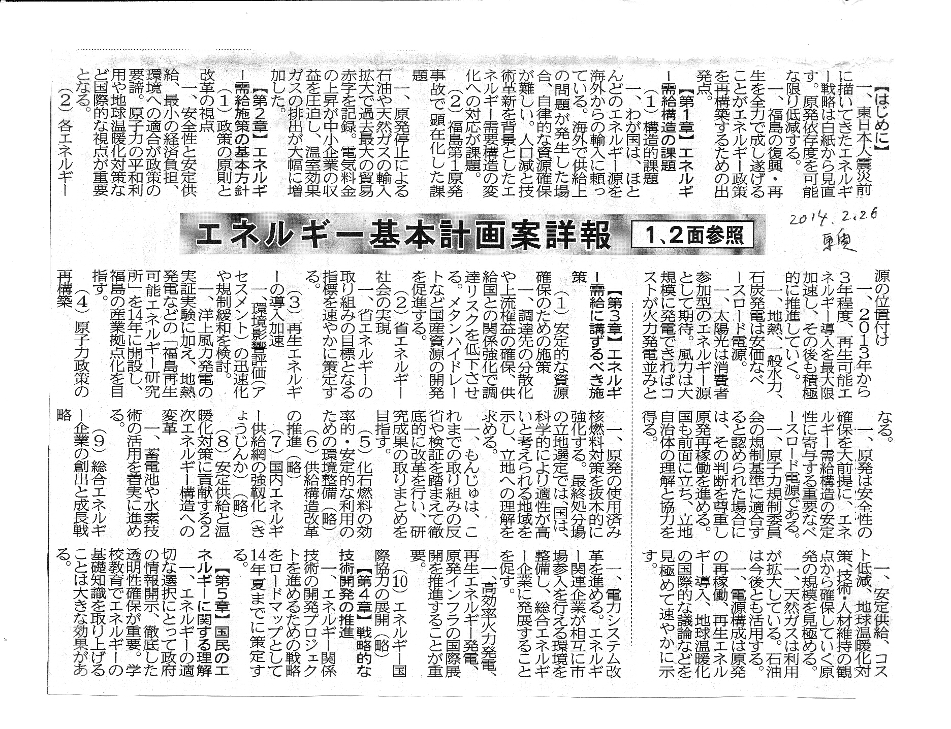 [2014_02_26_02]エネルギー基本計画案詳細(東奥日報2014年2月26日)