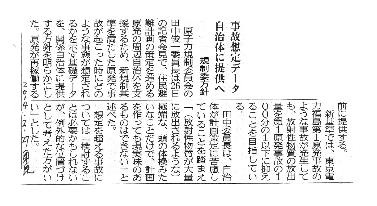 [2014_02_27_03]事故想定データ 自治体に提供へ 規制委方針(東奥日報2014年2月27日)