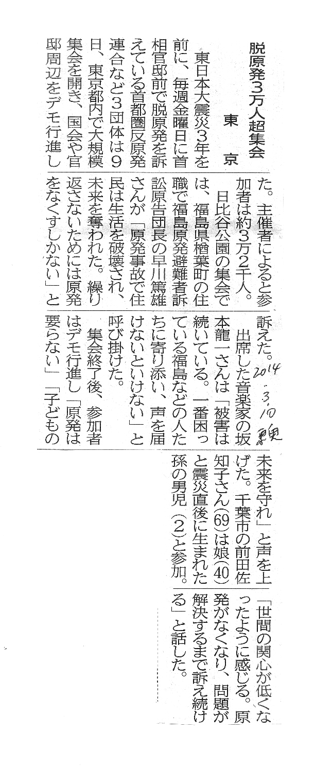 [2014_03_10_01]脱原発3万人超集会 東京(東奥日報2014年3月10日)