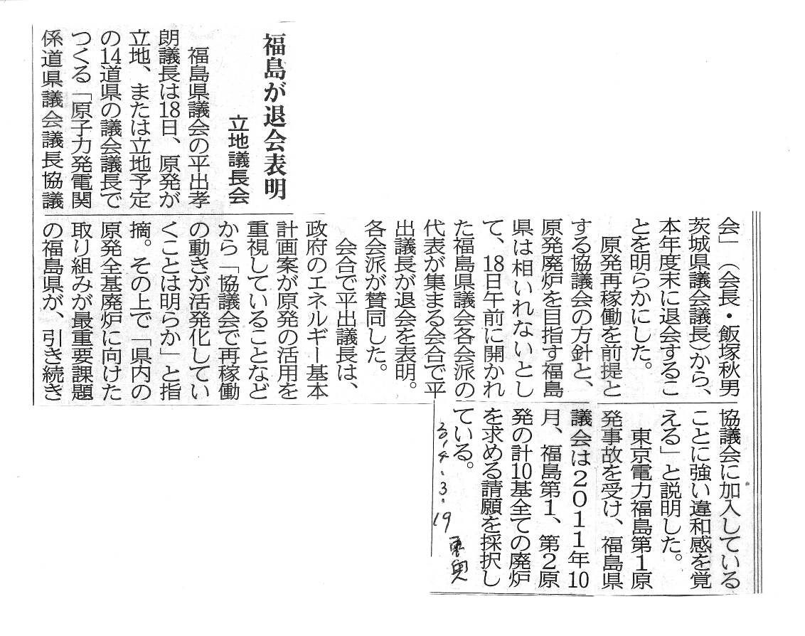 [2014_03_19_03]福島が退会表明 立地議長会(東奥日報2014年3月19日)