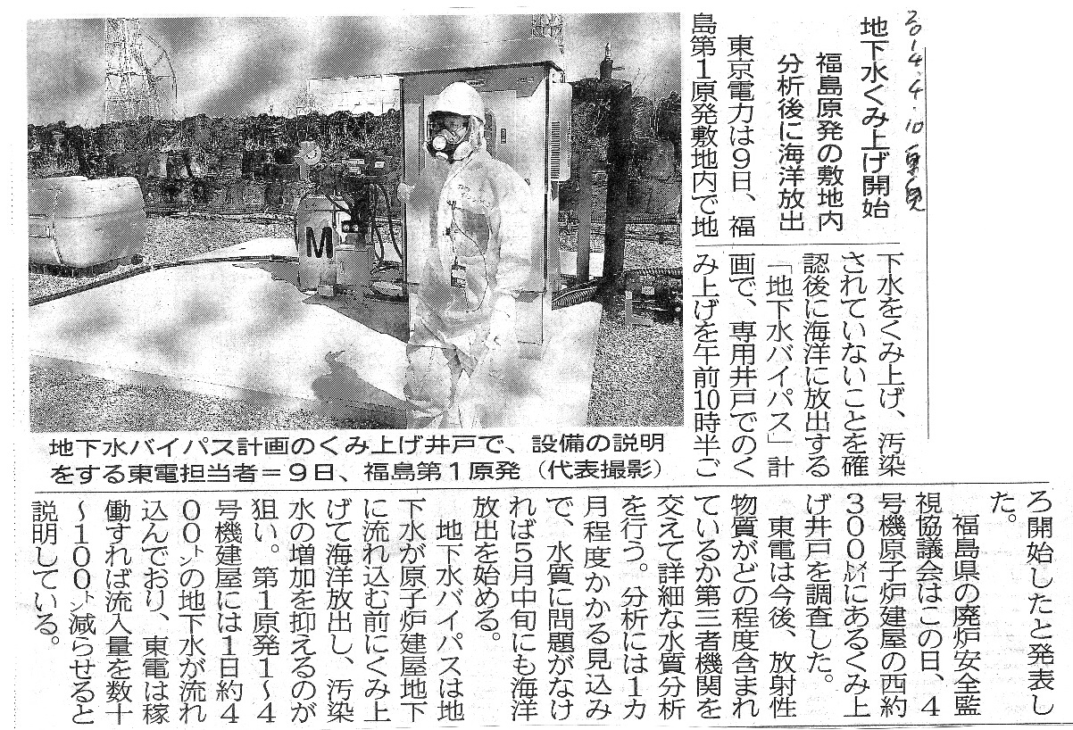 | [2014_04_10_01]地下水くみ上げ開始 福島原発の敷地内 分析後に海洋放出(東奥日報2014年4月10日) |