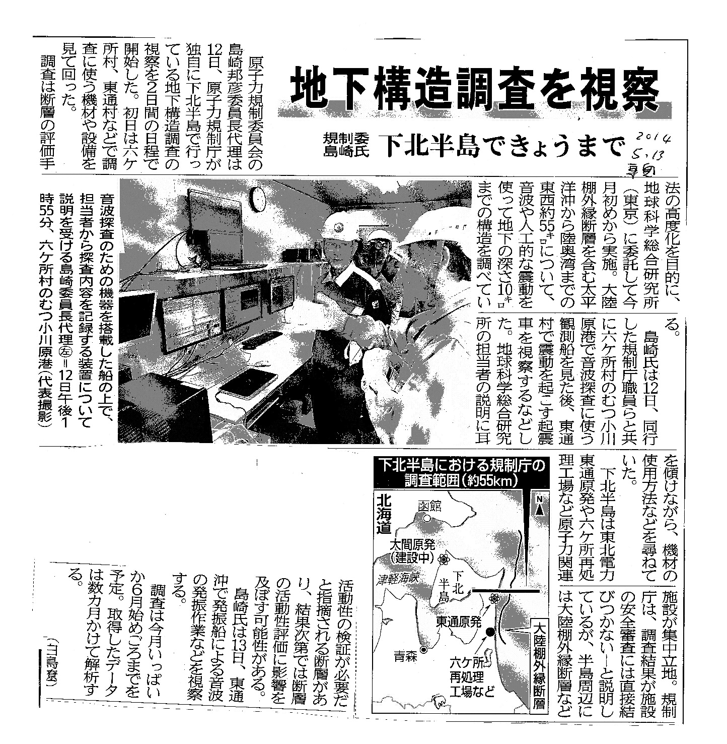 | [2014_05_13_01]地下構造調査を視察 規制委島崎氏 下北半島できょうまで(東奥日報2014年5月13日) |
