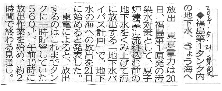 | [2014_05_21_02]福島第1タンク内の地下水、今日海へ(東奥日報2014年5月21日) |