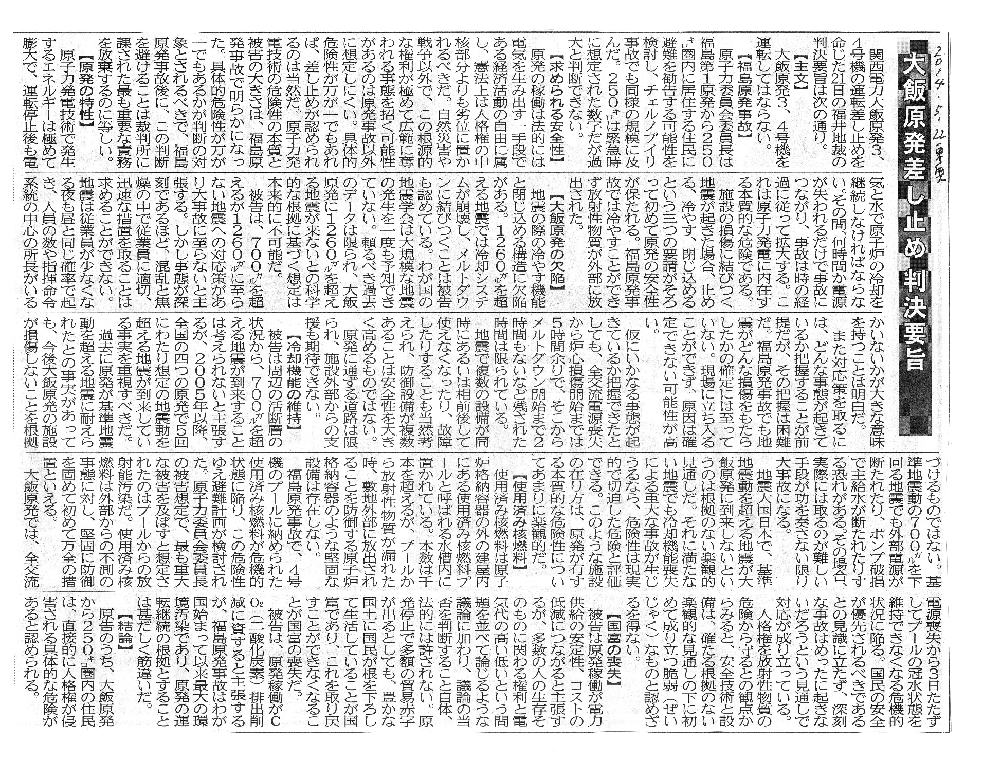 [2014_05_22_03]大飯原発差し止め 判決要旨(東奥日報2014年5月22日)