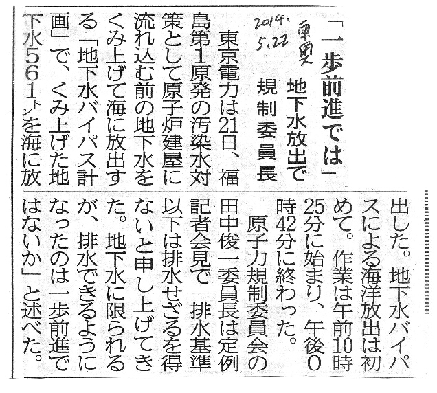 [2014_05_22_05]一歩前進では 地下水放出で 規制委員長(東奥日報2014年5月22日)