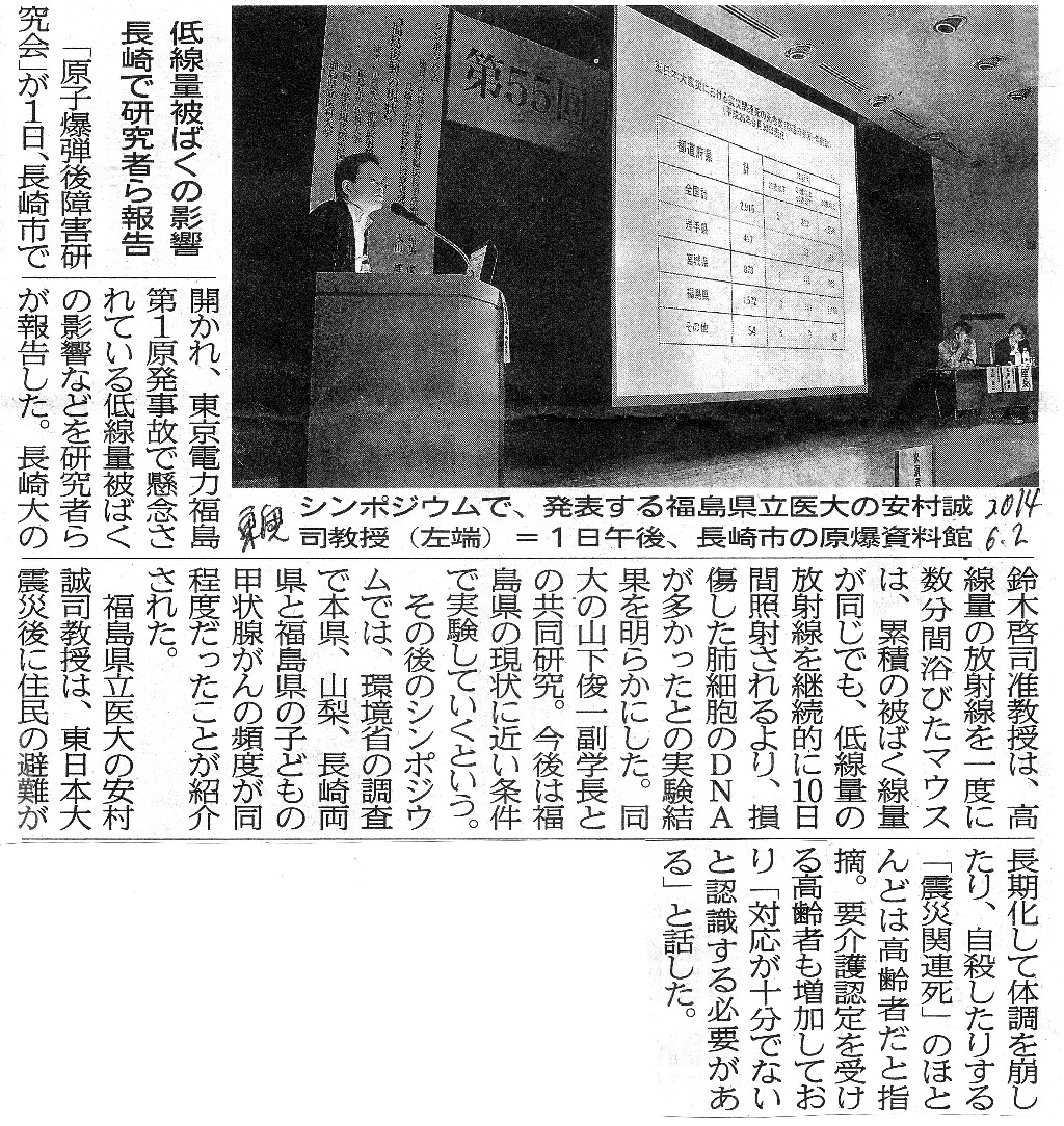 [2014_06_02_02]低線量被ばくの影響 長崎で研究者ら報告(東奥日報2014年6月2日)