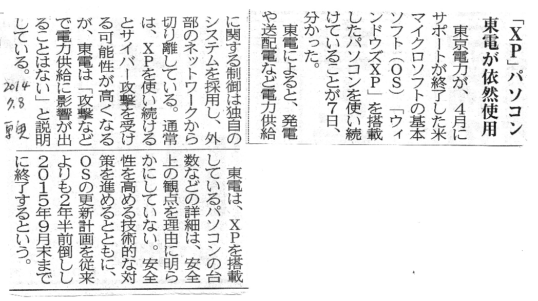 [2014_07_03_01]「XP」パソコン 東電が依然使用(東奥日報2014年7月3日)