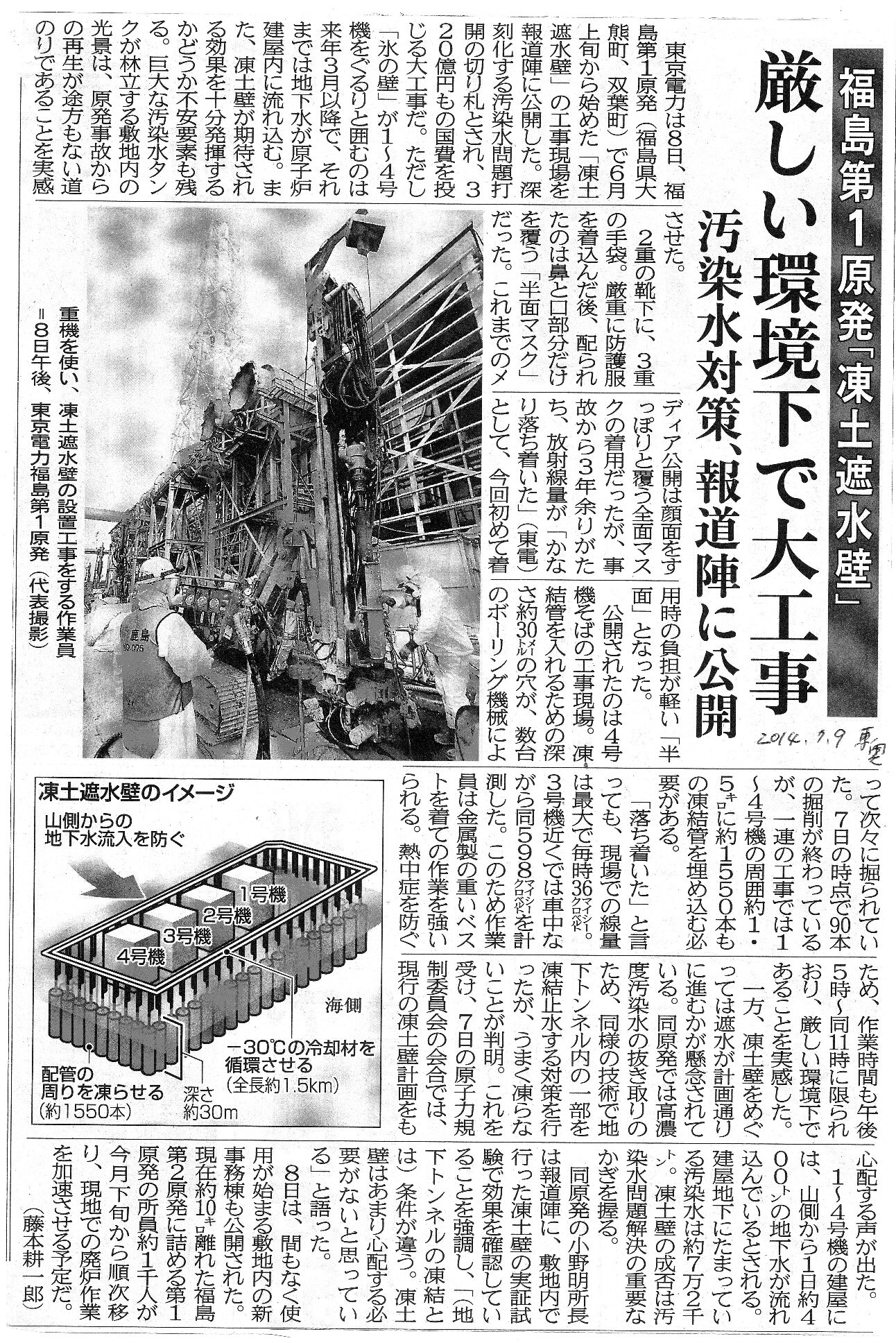 | [2014_07_09_02]福島第一原発 「凍土遮水壁」 厳しい環境下で大工事 汚染水対策、報道陣に公開(東奥日報2014年7月9日) |
