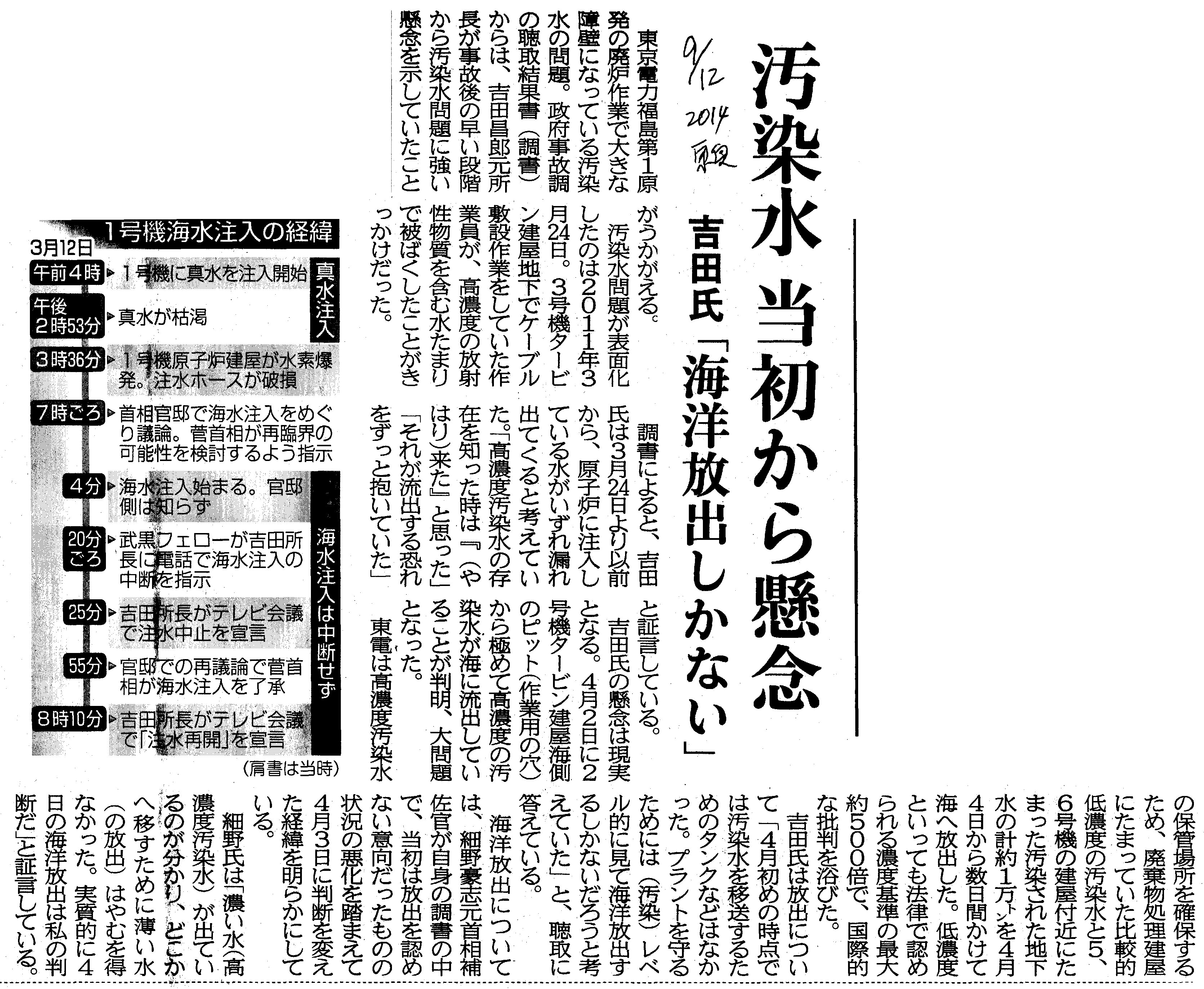 | [2014_09_12_04]汚染水 当初から懸念 吉田氏「海洋放出しかない」(東奥日報2014年9月12日) |