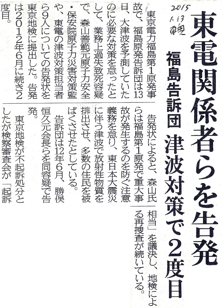 | [2015_01_13_01]東電関係者らを告発 福島告訴団 津波対策で2度目(東奥日報2015年1月13日) |