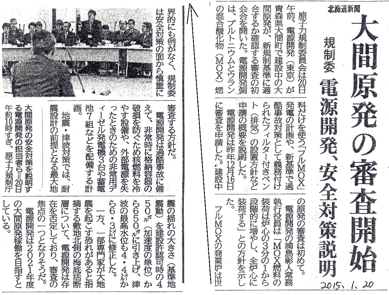 | [2015_01_20_01]大間原発の審査開始 規制委 電源開発、安全対策説明(北海道新聞2015年1月20日) |