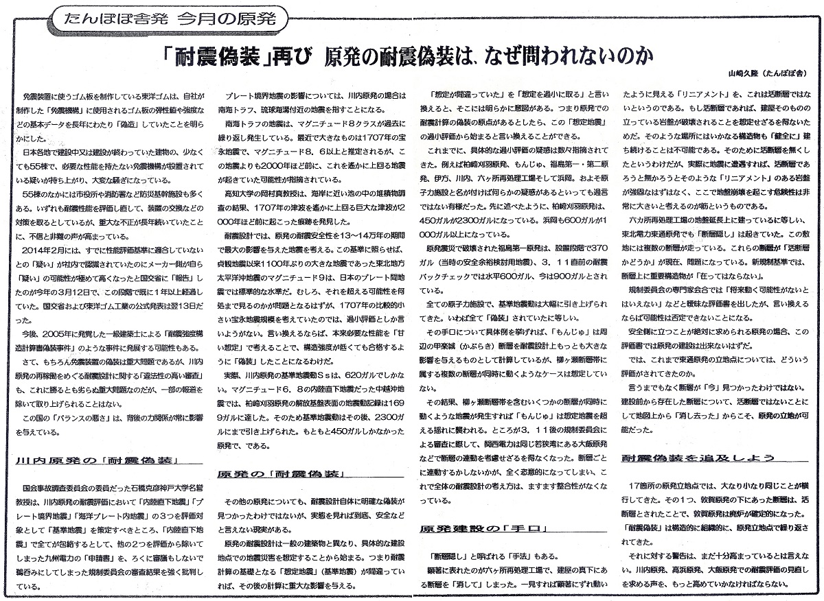 | [2015_03_01_01]今月の原発 「耐震偽装」再び 原発の耐震偽装は、なぜ問われないのか(よせあつめ新聞2015年3月1日) |
