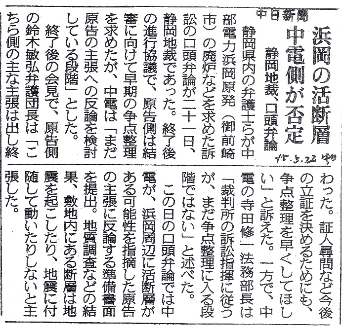 [2015_05_22_02]浜岡の活断層 中電が否定 静岡地裁、口頭弁論(中日新聞2015年5月22日)