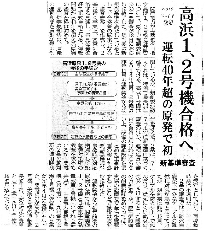 | [2016_02_19_01]高浜1,2号機合格へ 運転40年超の原発で初 新基準審査(東奥日報2016年2月19日) |