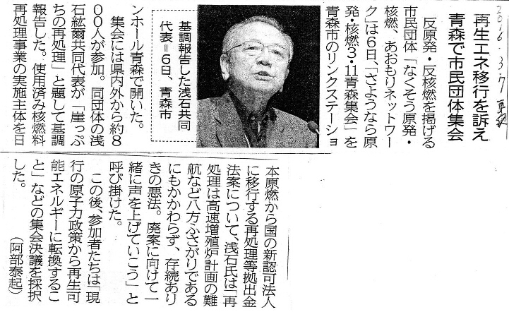 [2016_03_07_01]再生エネ移行を訴え 青森で市民団体集会(東奥日報2016年3月7日)