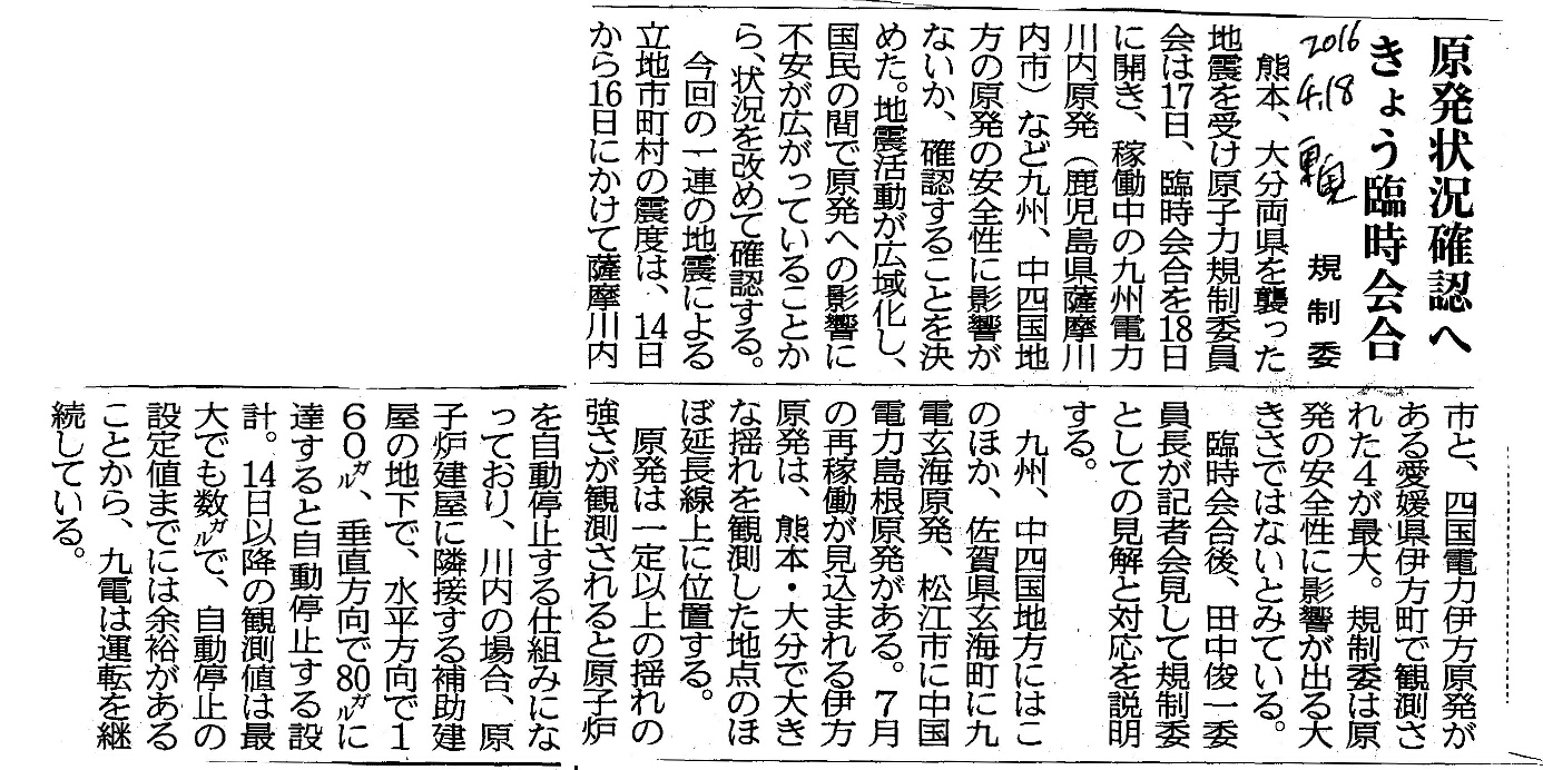 [2016_04_18_08]原発状況確認へ きょう臨時会合 規制委(東奥日報2016年4月18日)