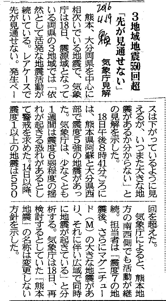 [2016_04_19_03]3地域地震550回超 「先が見通せない」 気象庁見解(東奥日報2016年4月19日)