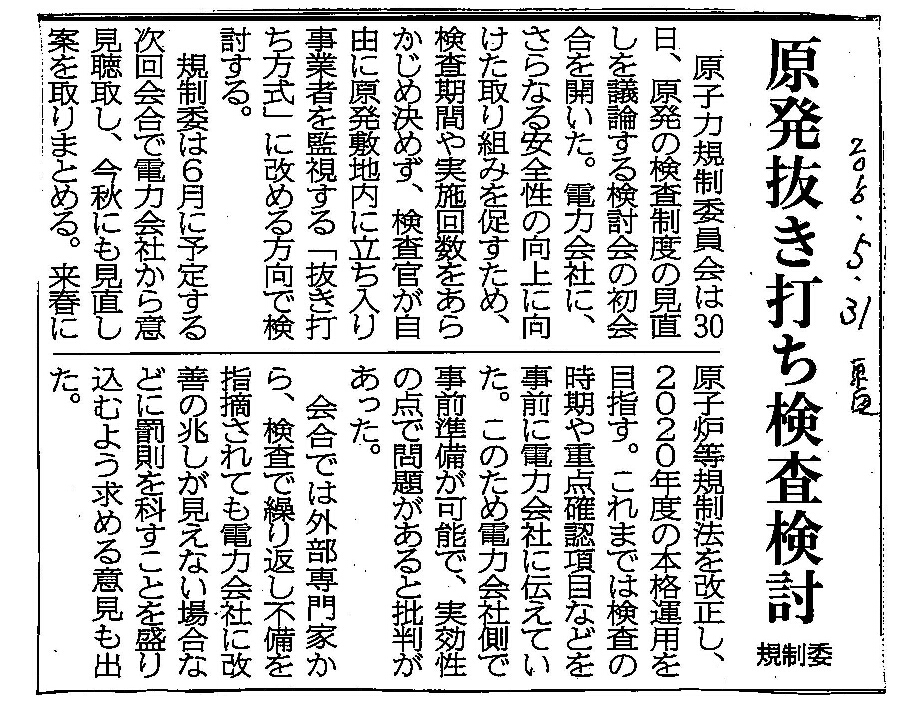 [2016_05_31_03]原発抜き打ち検査検討 規制委(東奥日報2016年5月31日)
