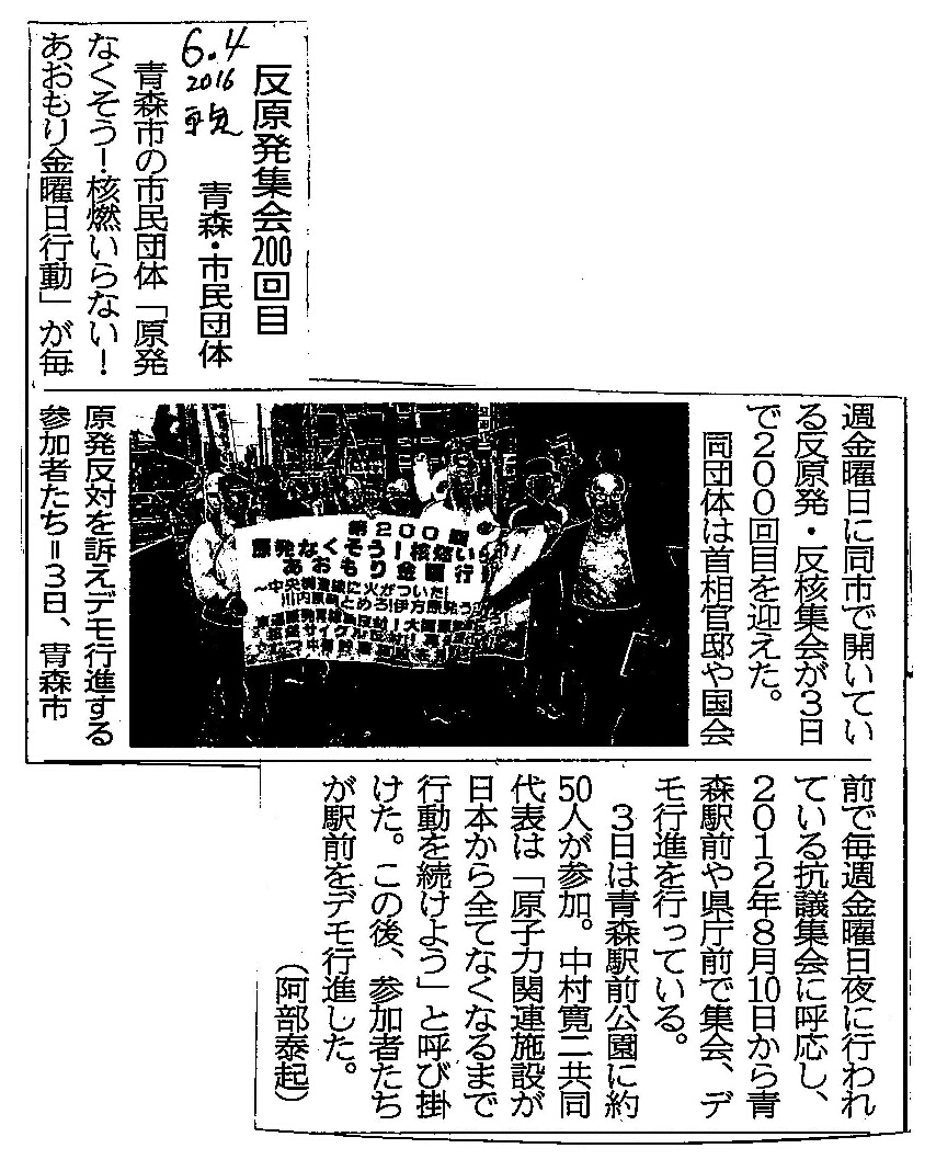 [2016_06_04_02]反原発集会200回目 青森・市民団体(東奥日報2016年6月4日)