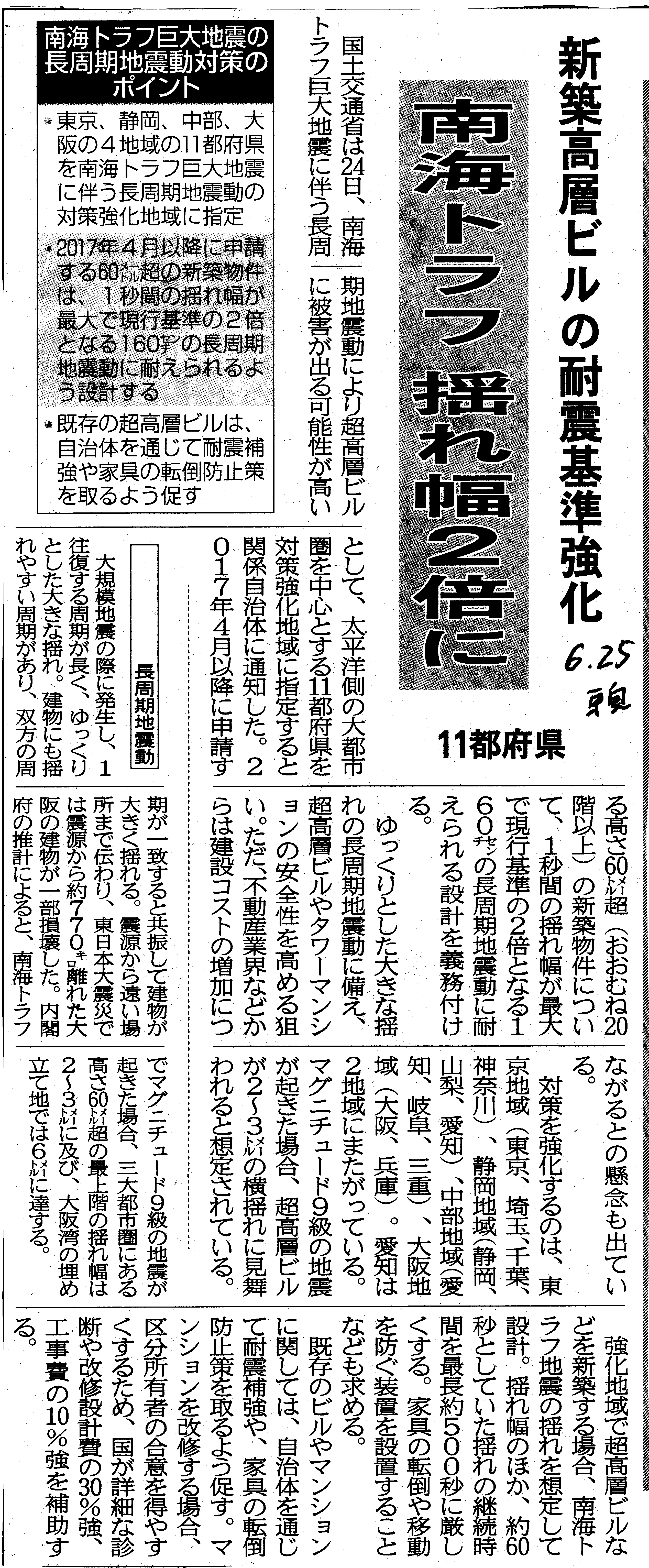 [2016_06_25_02]新築高層ビルの耐震基準強化 南海トラフ揺れ幅2倍に 11都府県(東奥日報2016年6月25日)