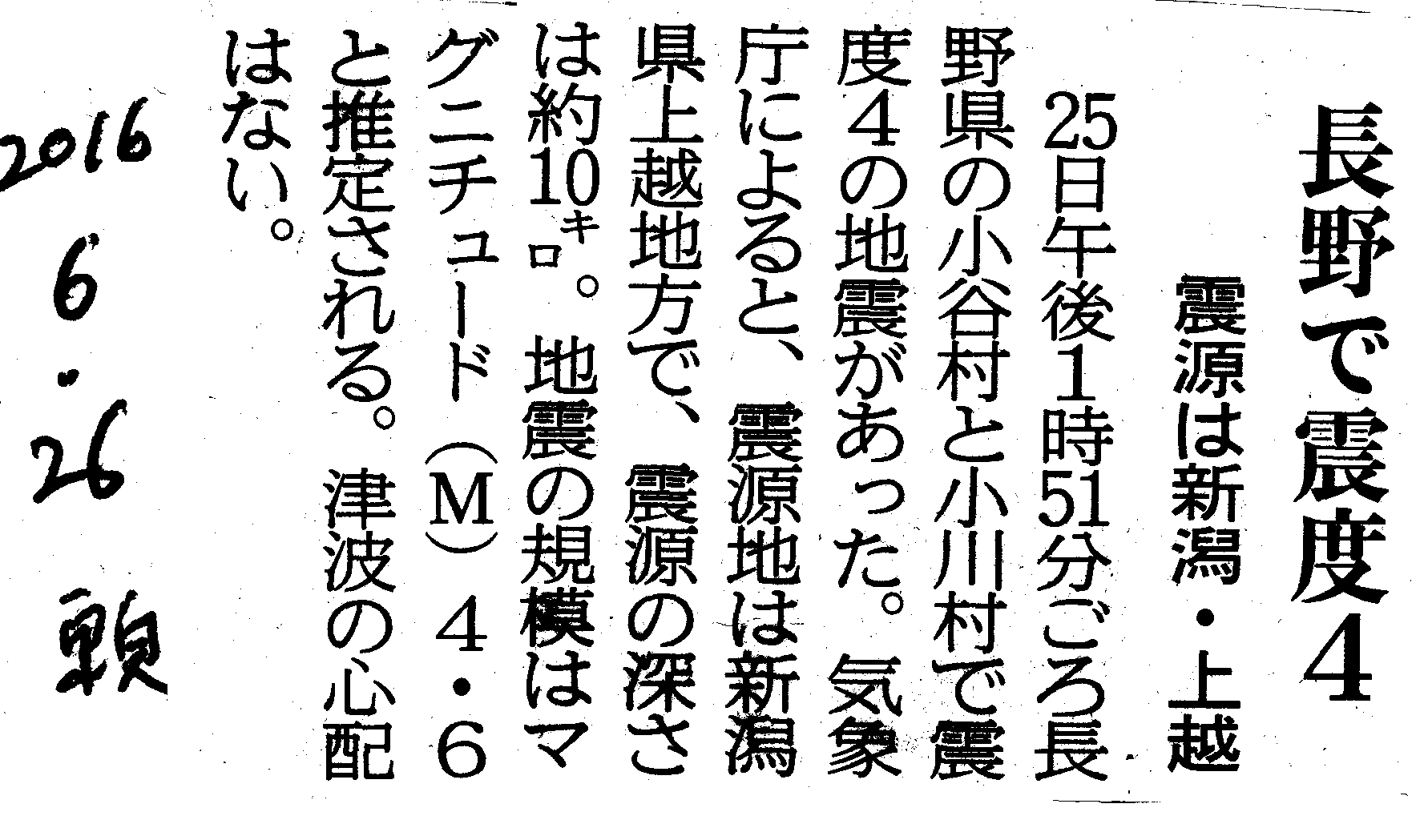 [2016_06_26_02]長野で震度4 震源は新潟・上越(東奥日報2016年6月26日)