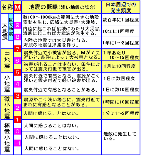 第1部 地震の基礎知識 1章大きな地震と小さな地震 マグニチュード 表1.3 マグニチュードの解説