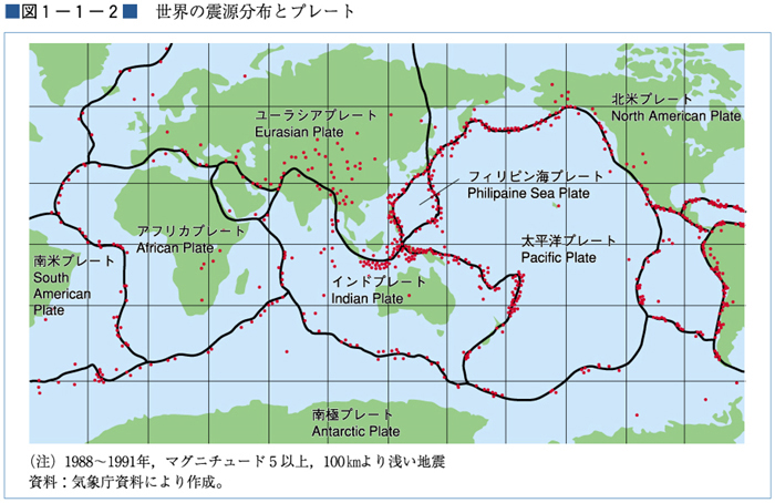 ホーム > 会議・報告 > 防災白書 > 平成14年版防災白書 > (図1-1-2)世界の震源分布とプレート