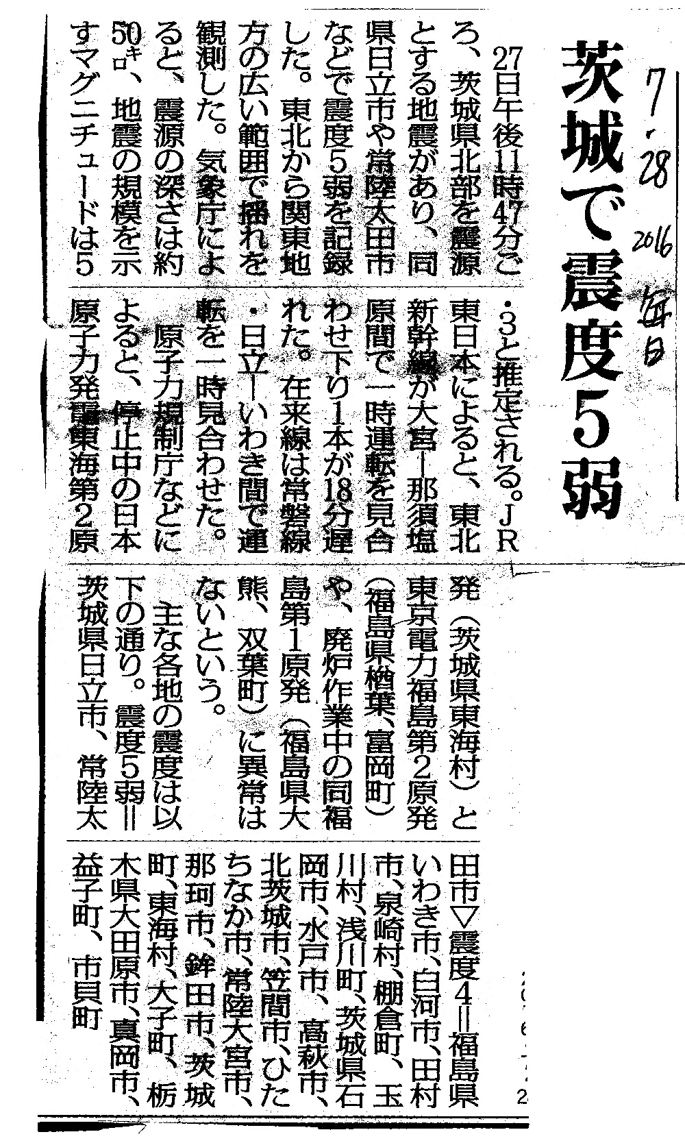 [2016_07_28_03]茨城で震度5弱(毎日新聞2016年7月28日)