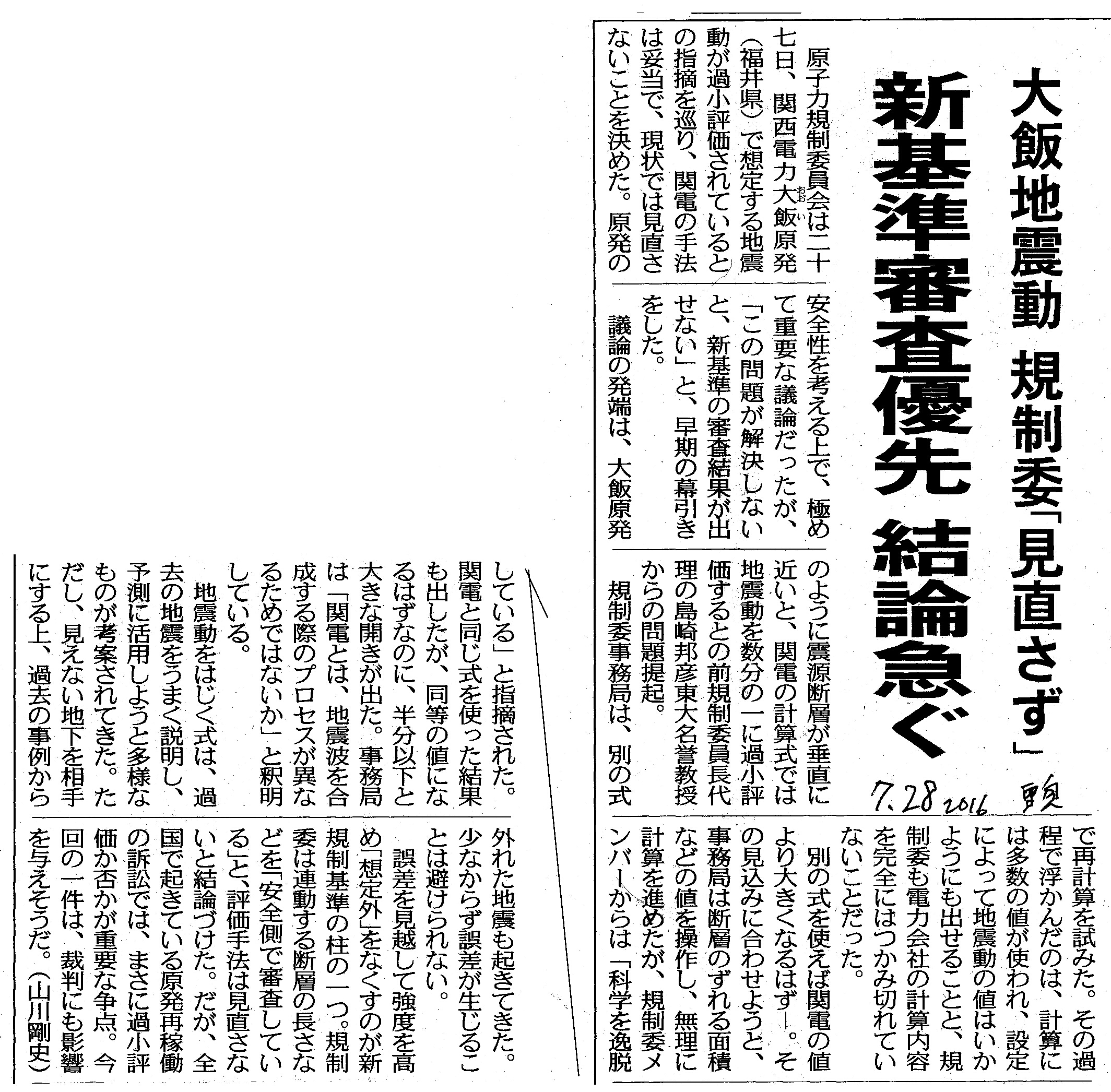 | [2016_07_28_04]大飯地震動規制委「見直さず」 新基準審査優先 結論急ぐ(東奥日報2016年7月28日) |