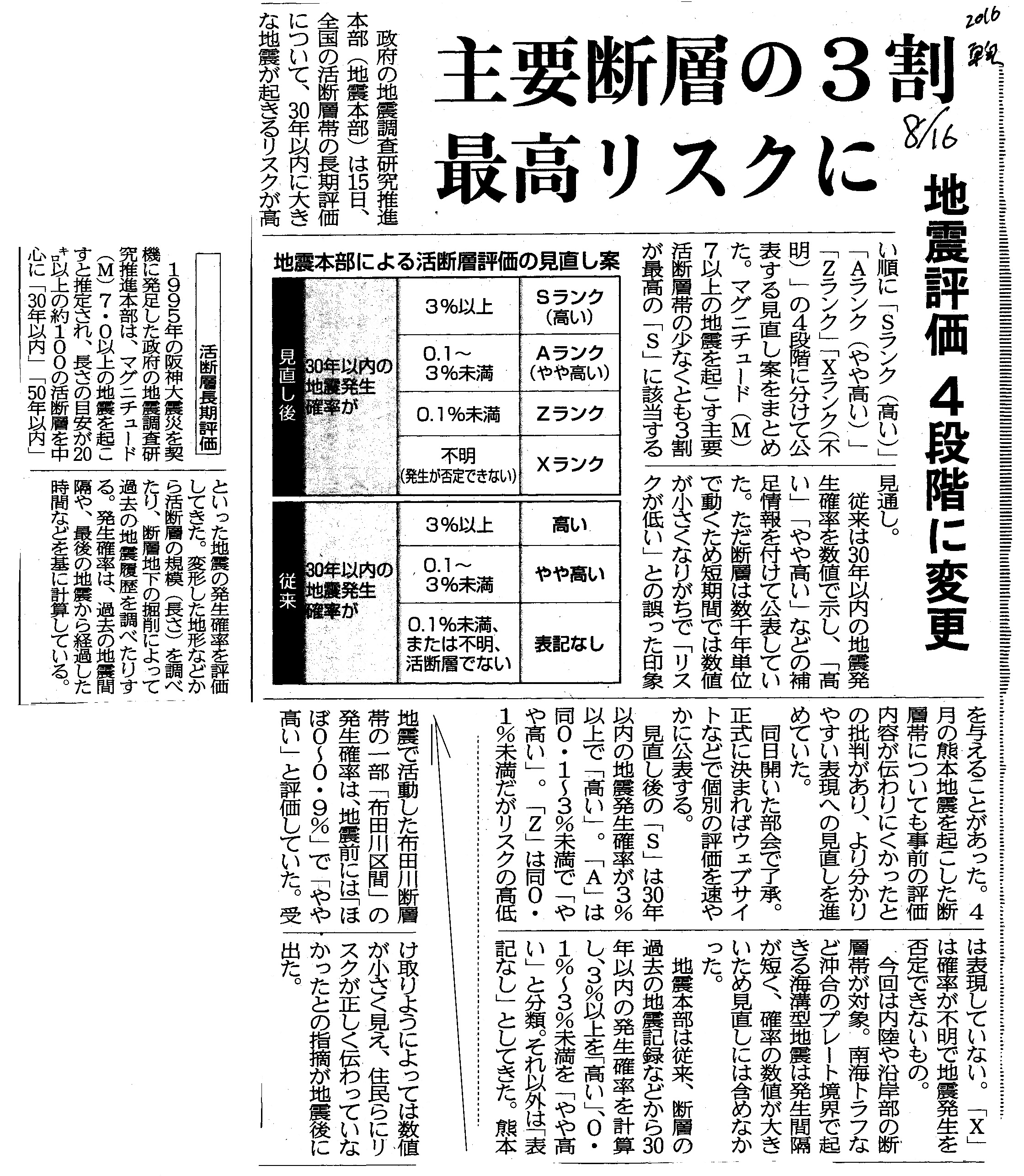 | [2016_08_16_02]主要断層の3割 最高リスクに 地震評価 4段階に変更(東奥日報2016年8月16日) |
