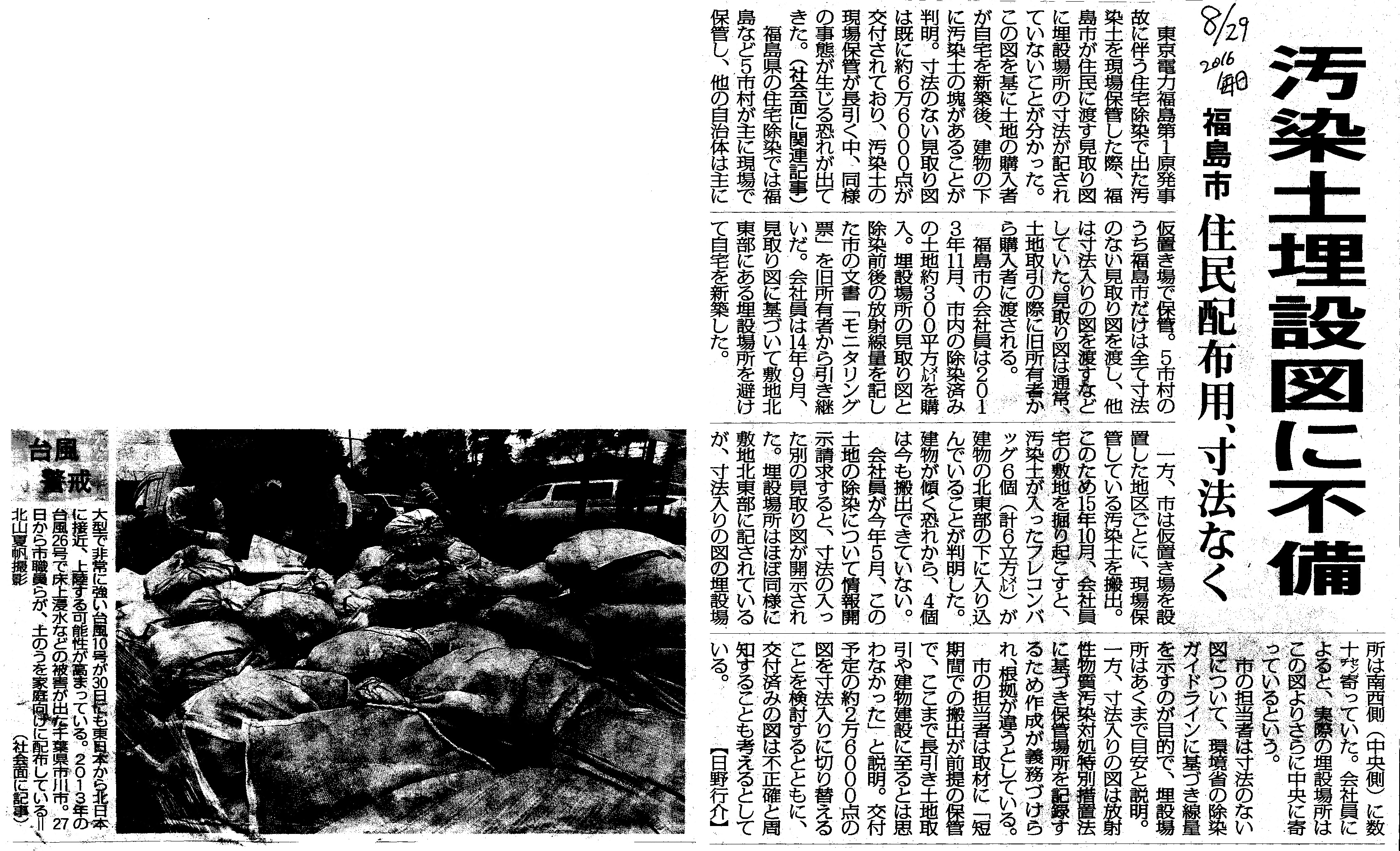 [2016_08_29_01]汚染度埋設図に不備 福島市 住民配布用、寸法なく(毎日新聞2016年8月29日)