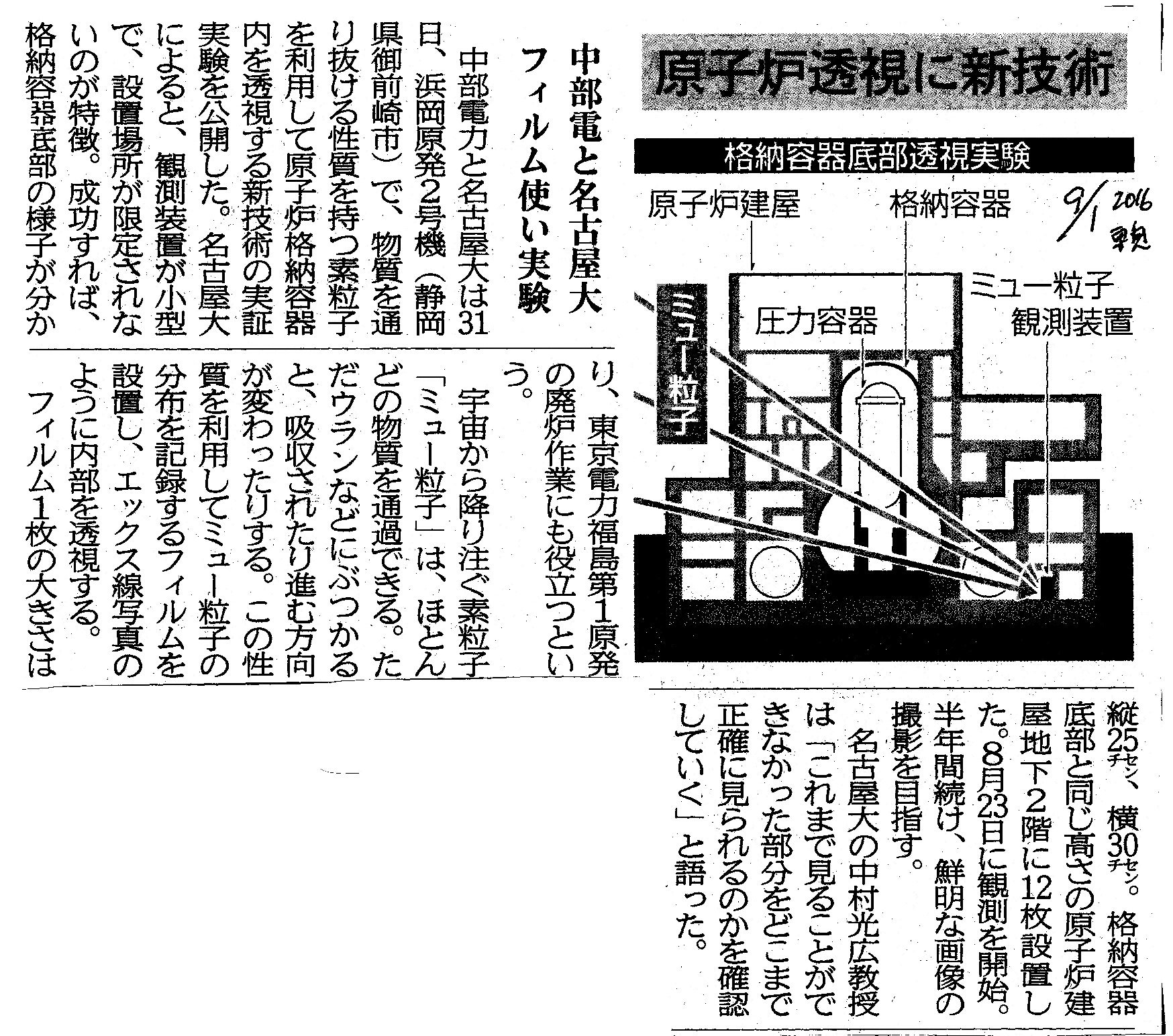 [2016_09_01_01]原子炉透視に新技術 格納容器底部透視実験 中部電と名古屋大フィルム使い実験(東奥日報2016年9月1日)