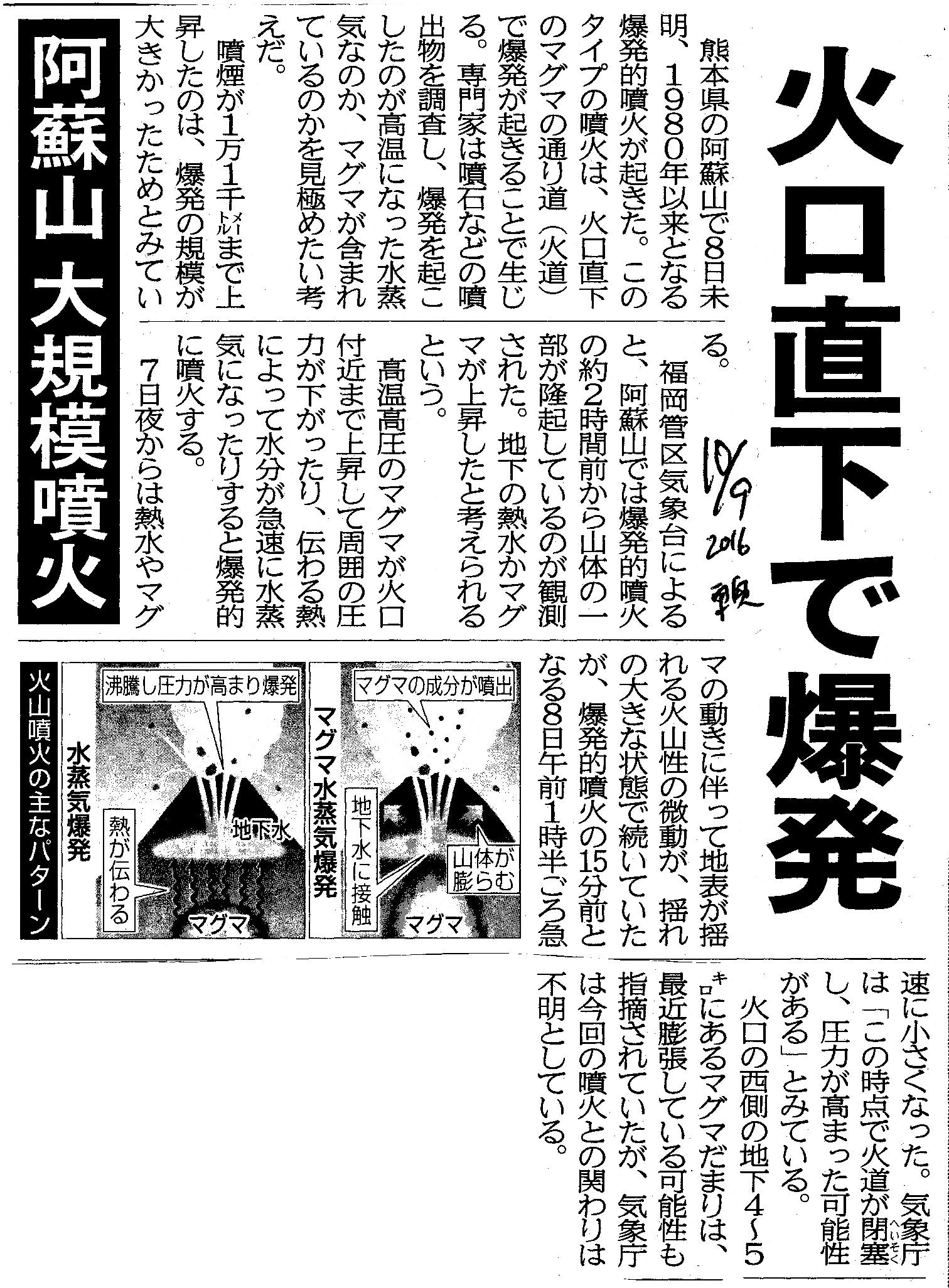 [2016_10_09_05]阿蘇山大規模噴火 火口直下で爆発(東奥日報2016年10月9日)