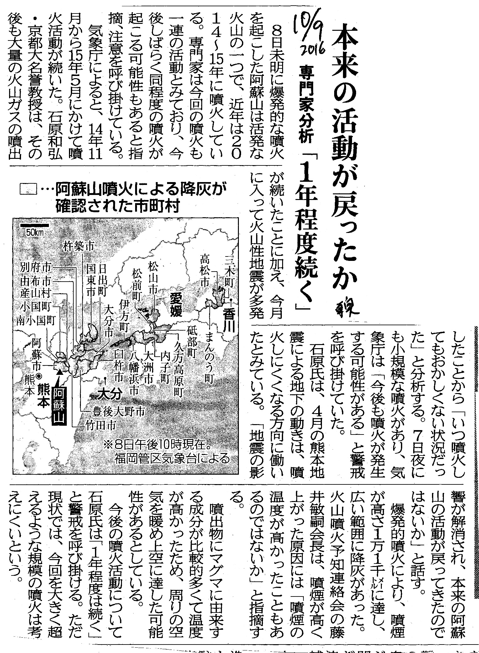 [2016_10_09_06]本来の活動が戻ったか 専門家分析 「一年程度続く」(東奥日報2016年10月9日)