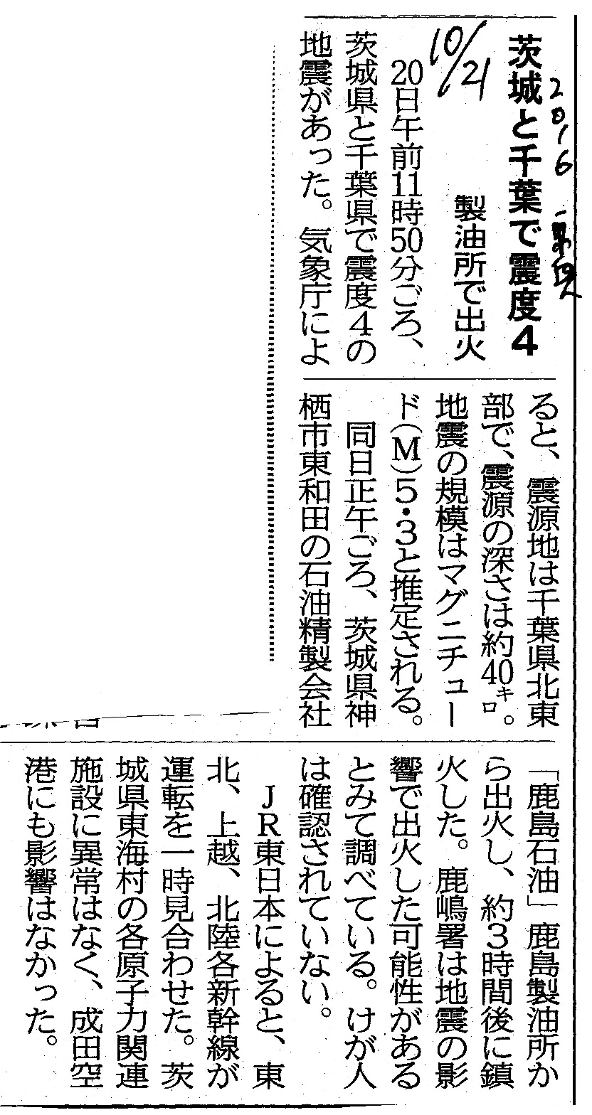 [2016_10_21_10]茨城と千葉で震度4 製油所で出火(東奥日報2016年10月21日)