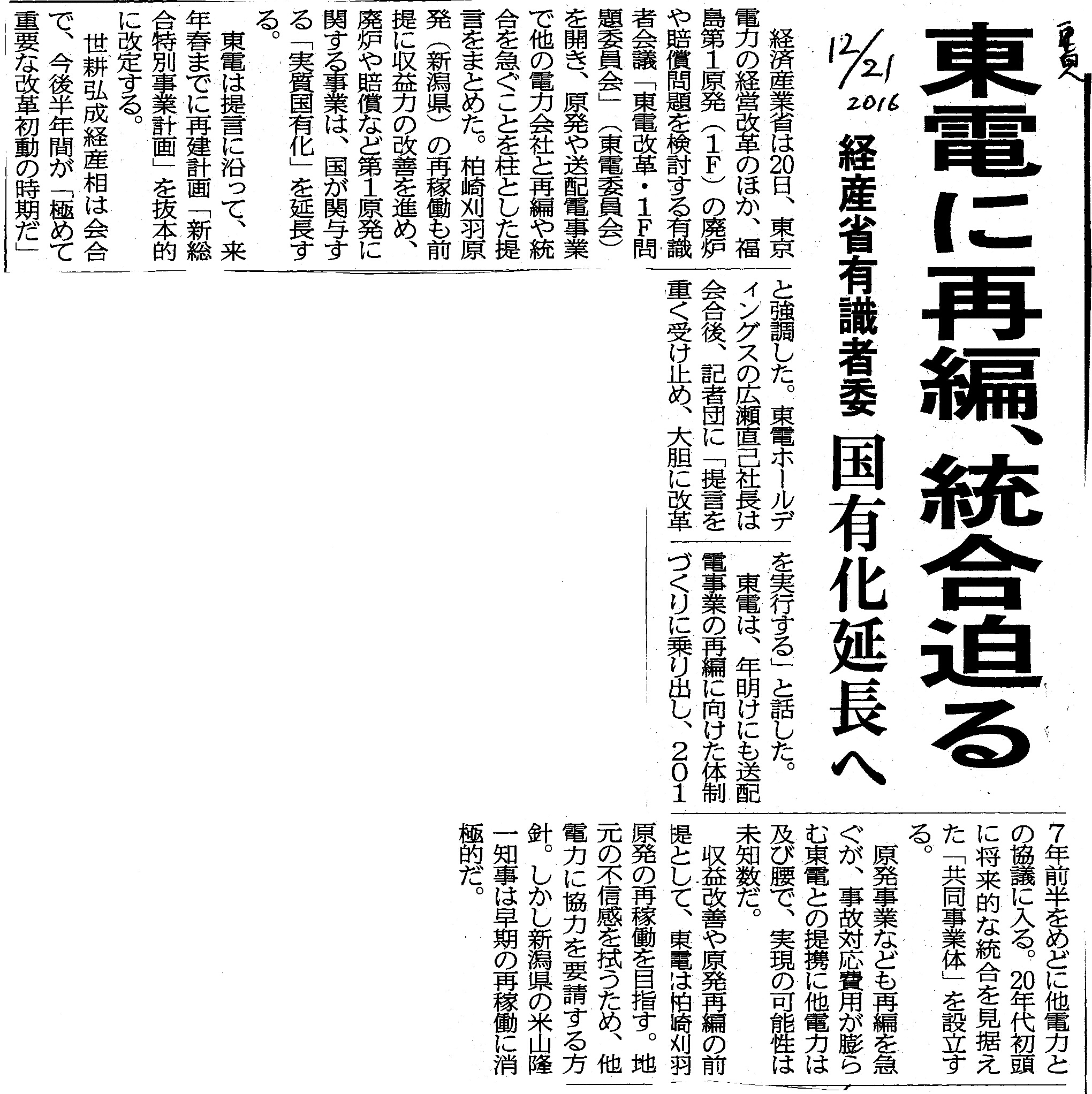 [2016_12_21_02]東電に再編、統合迫る 経産省有識者委 国有化延長へ(東奥日報2016年12月21日)