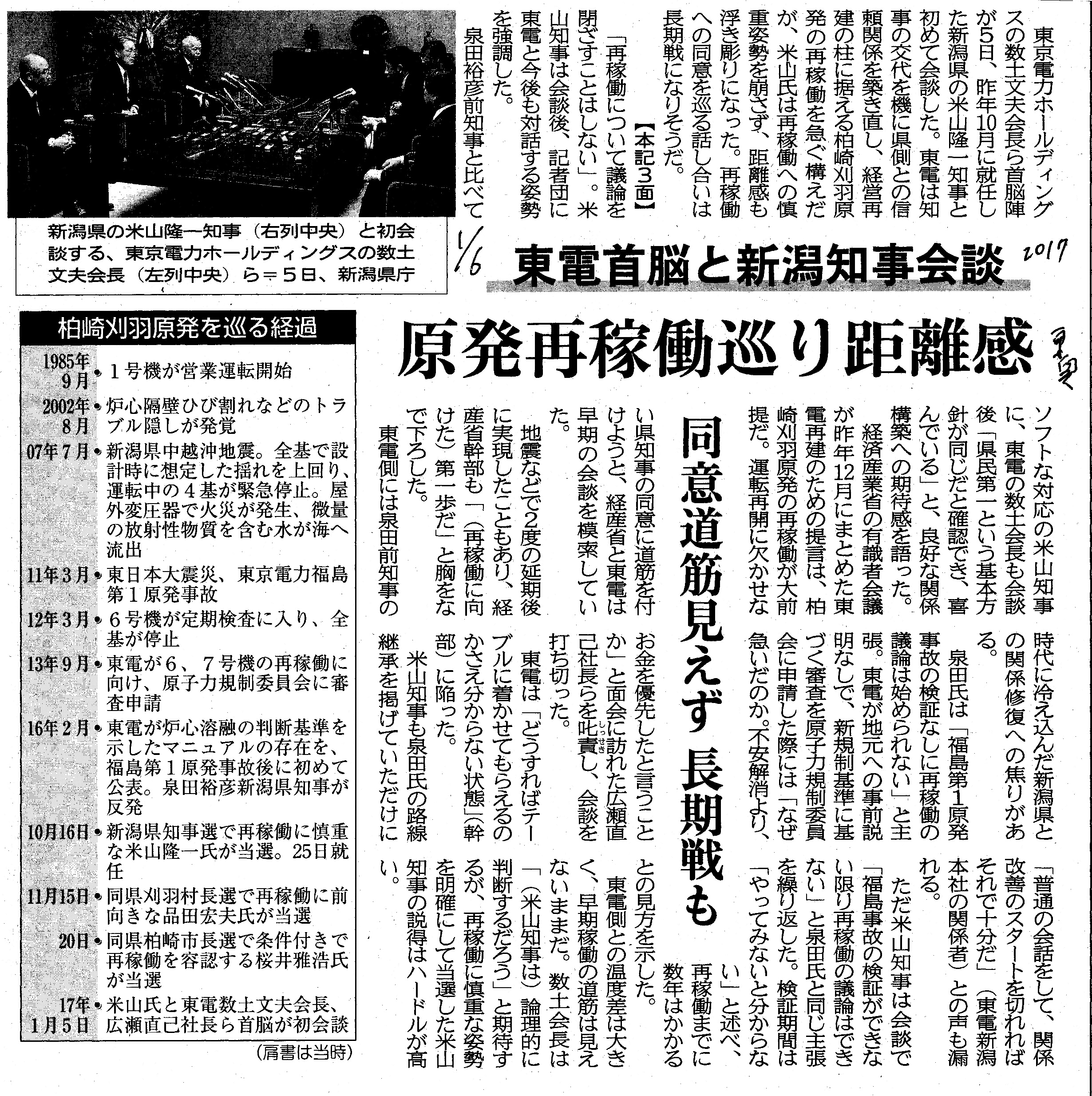 [2017_01_06_01]東電首脳と新潟知事会談 原発再稼働巡り距離感 同意道筋見えず 長期戦も(東奥日報2017年1月6日)