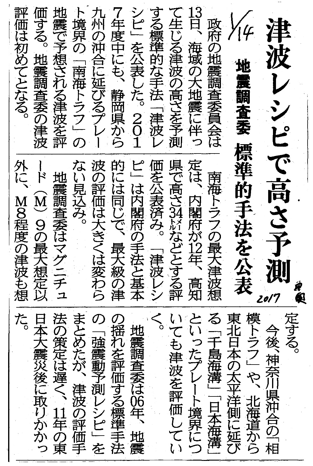 | [2017_01_14_01]津波レシピで高さ予測 地震調査委 標準的手法を公表(東奥日報2017年1月14日) |
