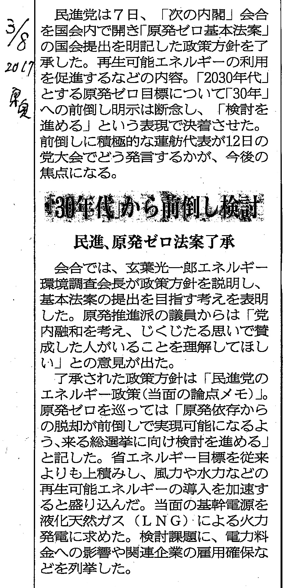 [2017_03_08_01]30年代から前倒し検討 民進、原発ゼロ法案了承(東奥日報2017年3月8日)