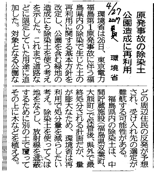 [2017_04_27_04]原発事故の除染土 公園造成に再利用 環境省(東奥日報2017年4月27日)