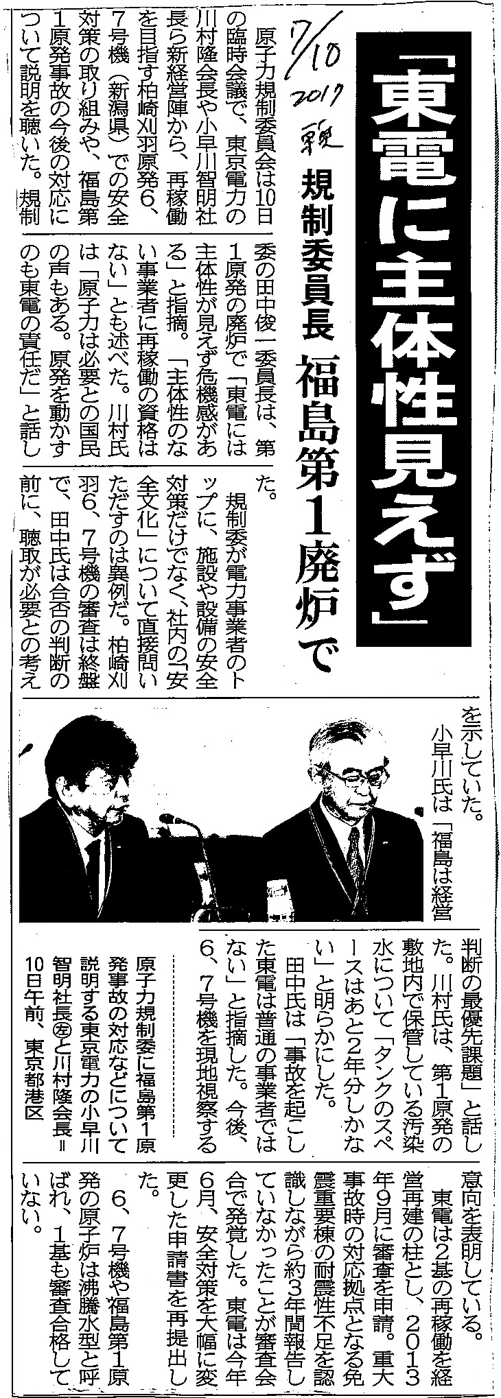 [2017_07_10_01]「東電に主体性見えず」 規制委員長 福島第一廃炉で(東奥日報2017年7月10日)