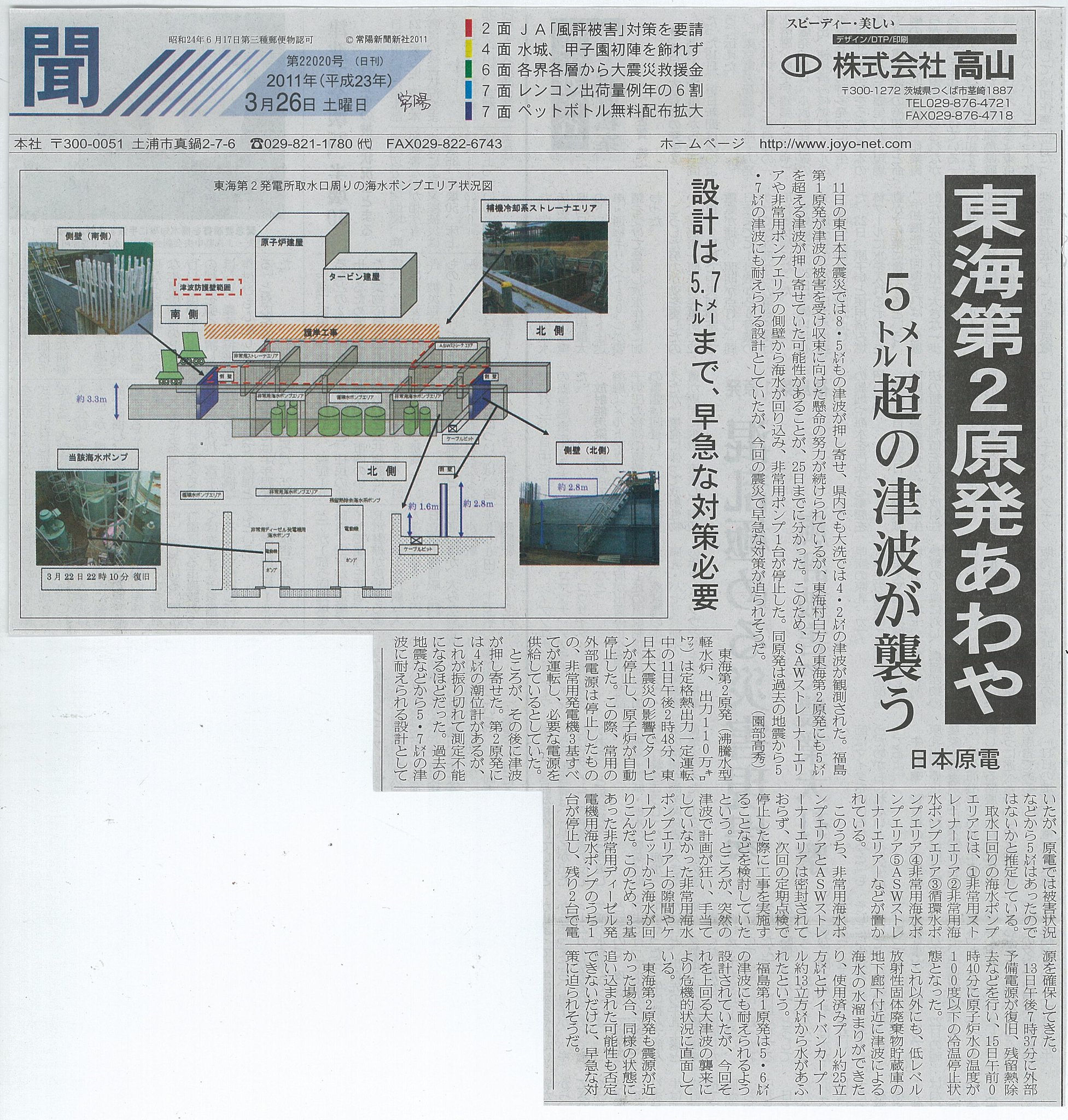 ※引用者注:以下は常陽新聞(2011年3月26日)記事である。記事をテキスト化したものが、