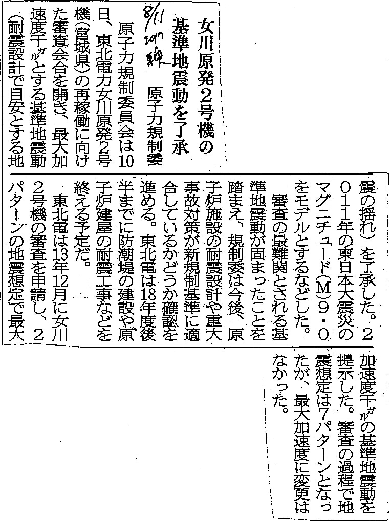 [2017_08_11_04]女川原発2号機の基準地震動を了承 原子力規制委(東奥日報2017年8月11日)