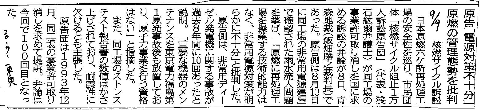 | [2017_09_09_03]原告「電源対策不十分」 原燃の管理態勢を批判 核燃サイクル訴訟(東奥日報2017年9月9日) |