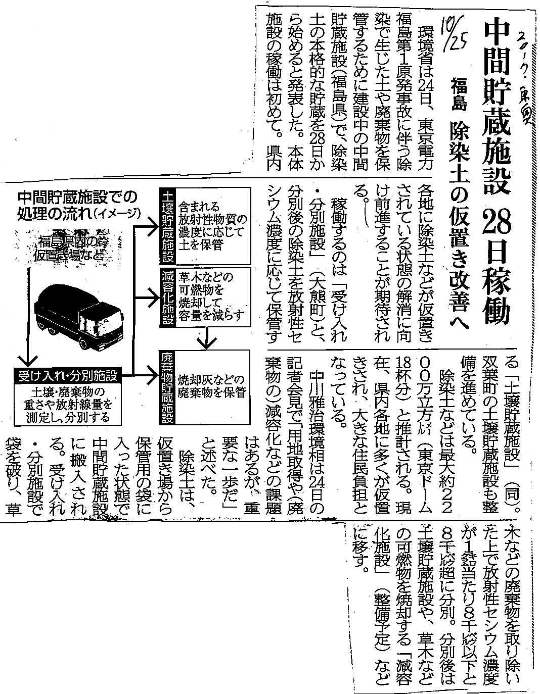 KEY_WORD:FUKU1_:環境省:受け入れ・分別施設:土壌貯蔵施設:中川雅治環境相: