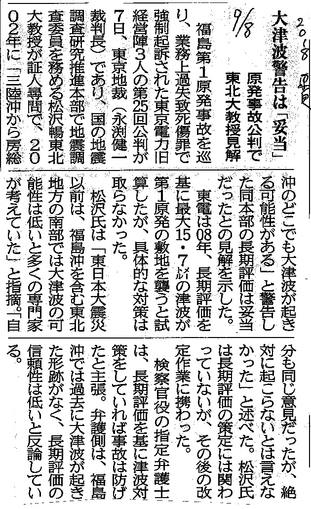 | [2018_09_08_10]大津波警告は「妥当」 原発事故公判で東北大教授見解(東奥日報2018年9月8日) |