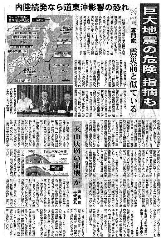 [2018_09_09_01]巨大地震の危険 指摘も 専門家「震災前と似ている」 内陸続発なら道東沖影響の恐れ 「火山灰層の崩壊」か 厚真町土砂崩れ(東奥日報2018年9月9日)